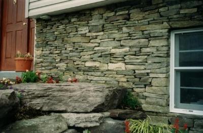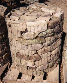 Mixed grade, flat stone with varying size and thickness. Each stone has a selected straight edge sawed at a depth of 4".