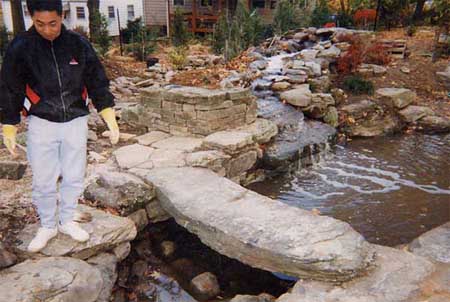 Matt McClain has mastered the art of creating natural looking waterfalls.Waterfalls at The Washington Home & Garden Show, 2001