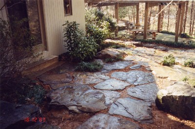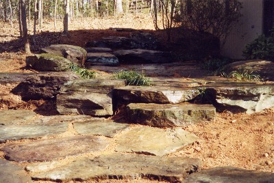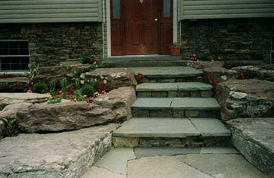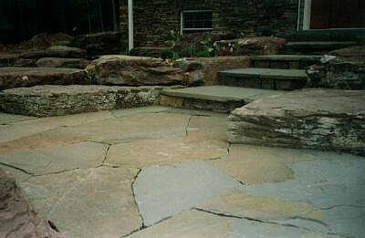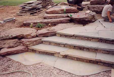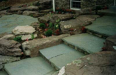 stairway, hand carving blue stone steps and patiosreminiscent of old world